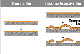 The film thickness is a very important factor because it determines whether the heat resistance, appearance, and anticorrosion can be maintained for a long period of time. The standard film thickness is very important because it brings out the highest performance of paint. The initial heating should be done gradually. When the standard film thickness is exceeded and heat-up is done rapidly, the residual solvent and the reactive gas are produced in large amount during the hardening of the paint film, which degrade the performance, such as peeling caused by the swelling of the paint film.