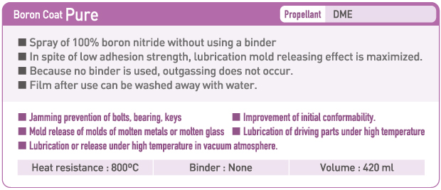 | ●This is a dry type of lubricating spray that disperses the fluorine resin in the heat resistant binder. |