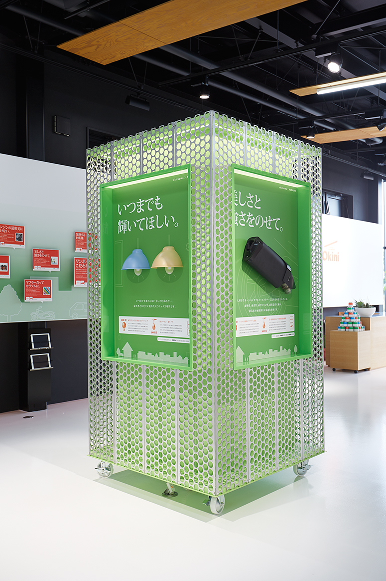 お客様との交流の窓口として、オキツモ本社(三重県名張市)にショールームがオープンしました。この「Okini」では、オキツモの歴史をはじめ、オキツモの塗料が社会や暮らしのあちらこちらで活躍していることを体感いただけるような驚きと感動のシカケをご用意しております。ぜひ、見て、触れて、塗料の無限に広がる可能性をご体感ください。
